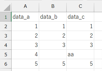 なおExcelでは「data_c」のように文字列が含まれていると、正常に出力できません。「data_a」のように、数値のみのデータを用意しましょう。